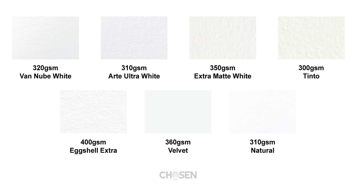 - Premium Paper Stocks: Choose from a variety of high-quality paper options, such as textured Van Nube White, smooth Extra Matte, or luxurious Velvet finishes. These stocks are carefully selected to enhance the embossed effect and provide a premium feel.